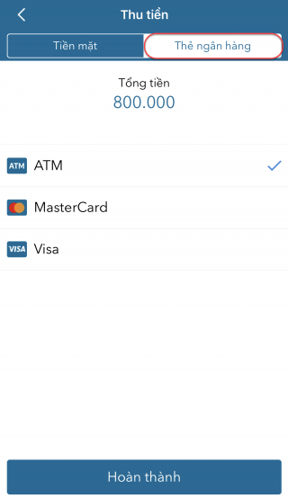 - Chọn hình thức khách thanh toán: ATM, MasterCard, Visa.
