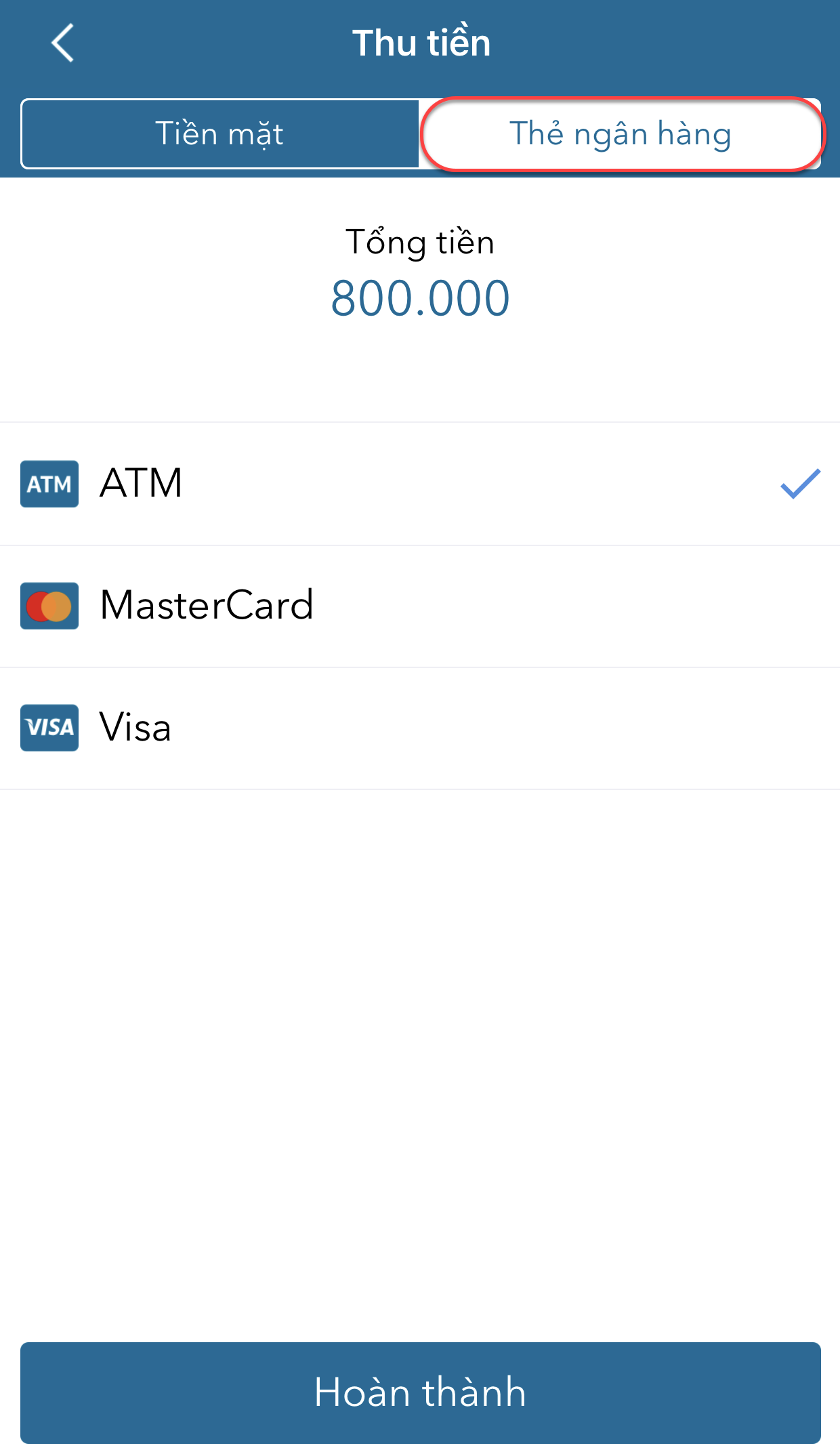 - Nhấn chọn tab Thẻ ngân hàng.