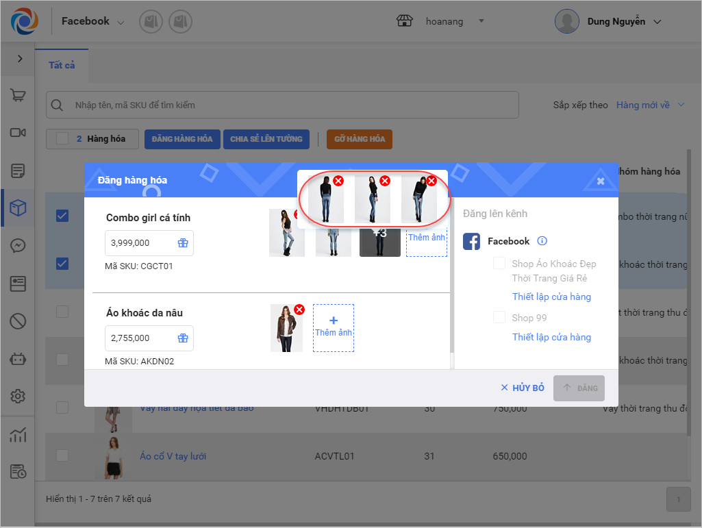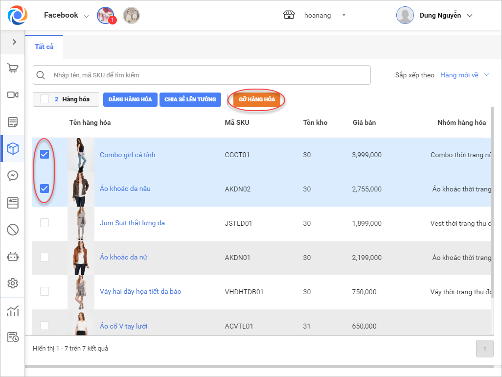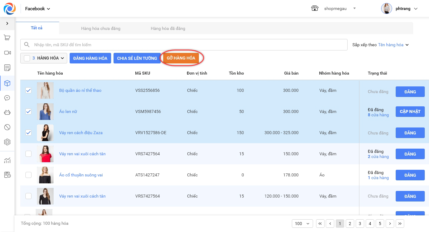 6.2. Gỡ hàng hóa trên từng fanpage: