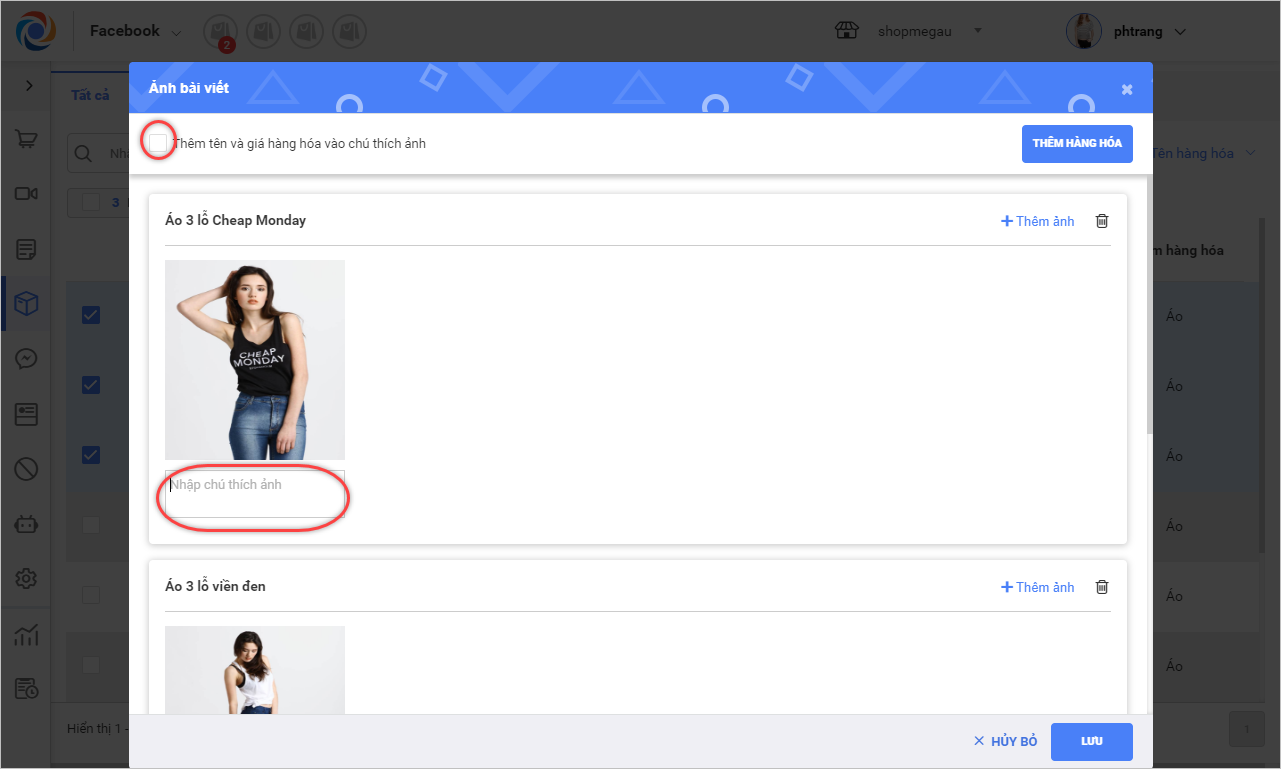 2. Thêm ảnh cho các hàng hóa đăng lên Facebook