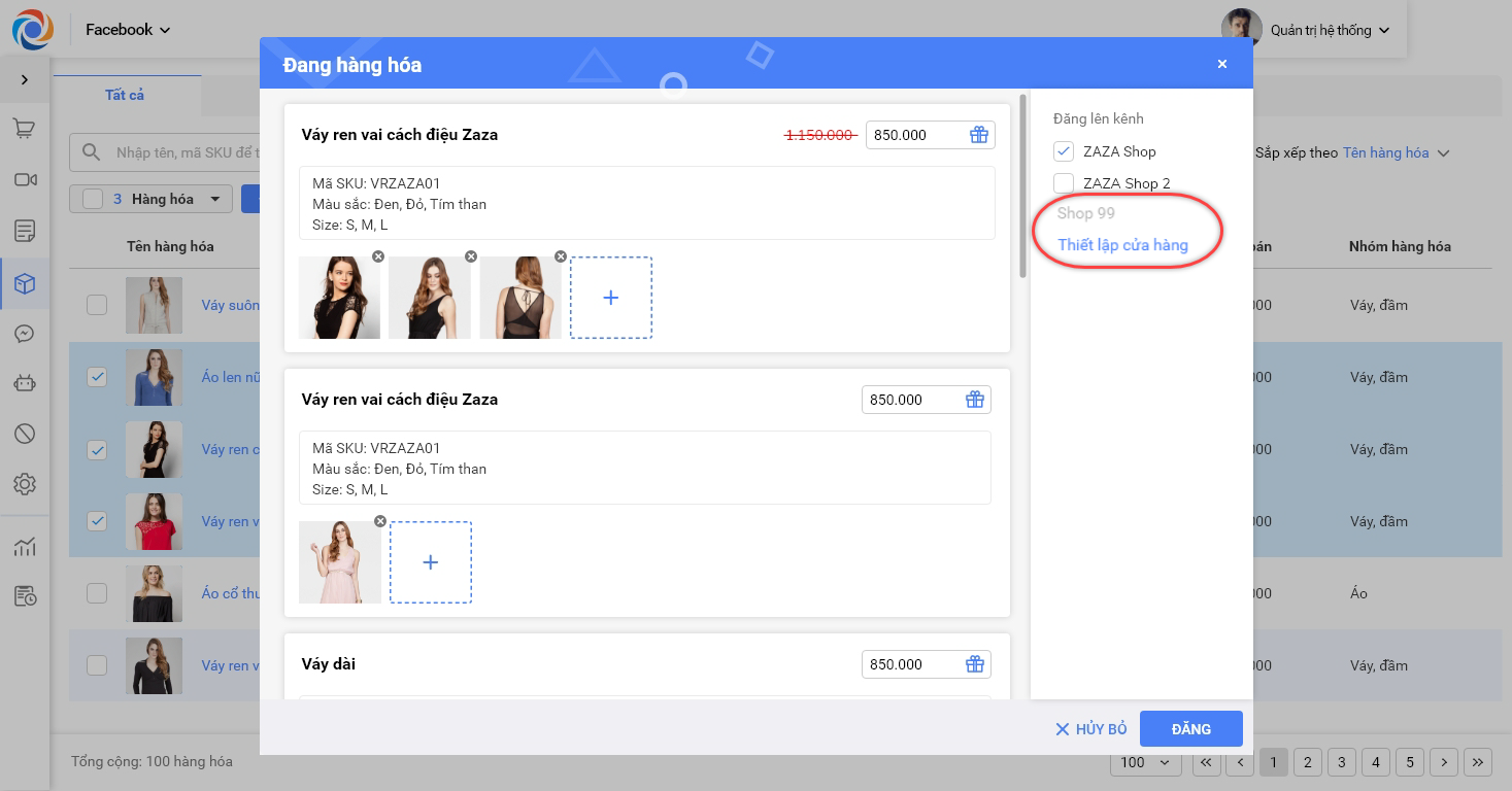 3. Nhấn Đăng để đăng các hàng hóa vừa chọn lên Fanpage.