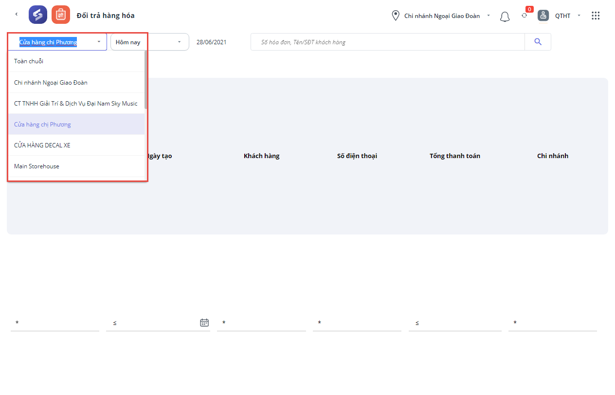 - Đổi trả hàng hóa khác chi nhánh
