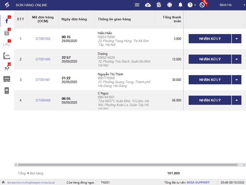 trên thanh công cụ để xem danh sách đơn hàng từ Facebook. - Nhấn Nhận xử lý đơn hàng.