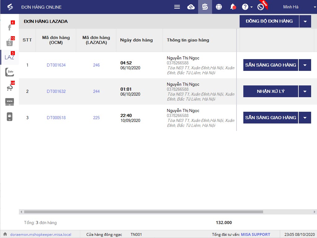 trên thanh công cụ để xem danh sách đơn hàng từ Lazada. - Thu ngân thực hiện các bước tiếp theo tương tự như đơn hàng Shopee.
