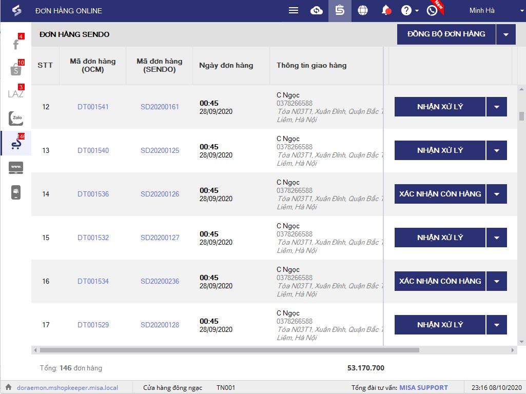 - Trên danh sách đơn hàng, chương trình đang lấy toàn bộ đơn đã được Sendo duyệt.