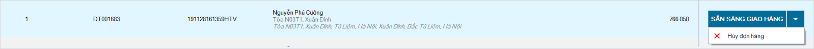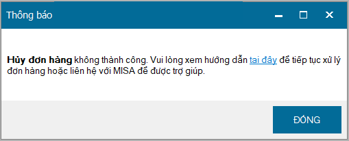 Bước 2: Phần mềm cảnh báo Hủy đơn hàng không thành công
