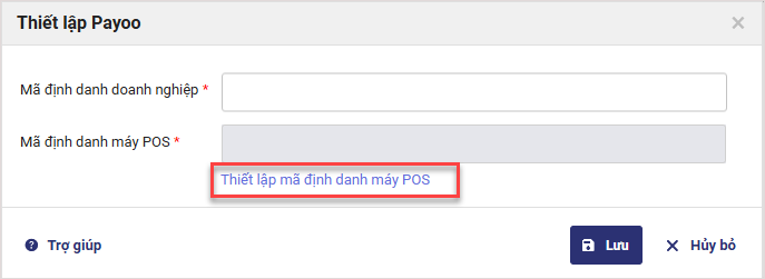 Nhập mã định danh máy POS được Payoo cung cấp