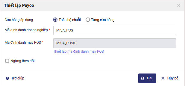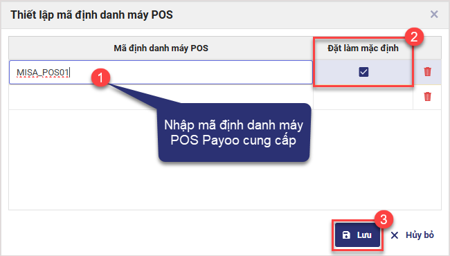 Lưu ý: Có thể thêm nhiều mã định danh POS, nhưng chỉ chọn được một mã mặc định