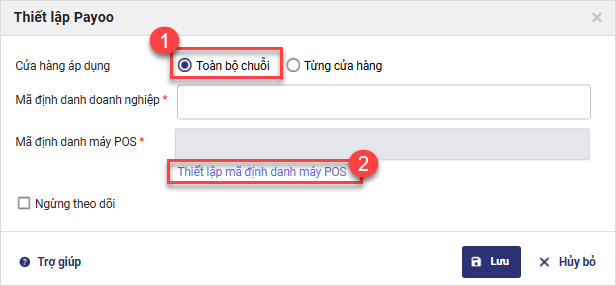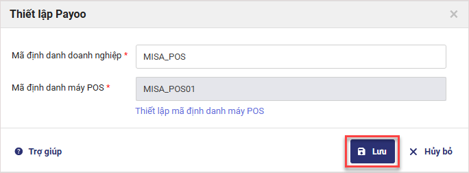 Bước 4: Thiết lập mã định danh máy POS