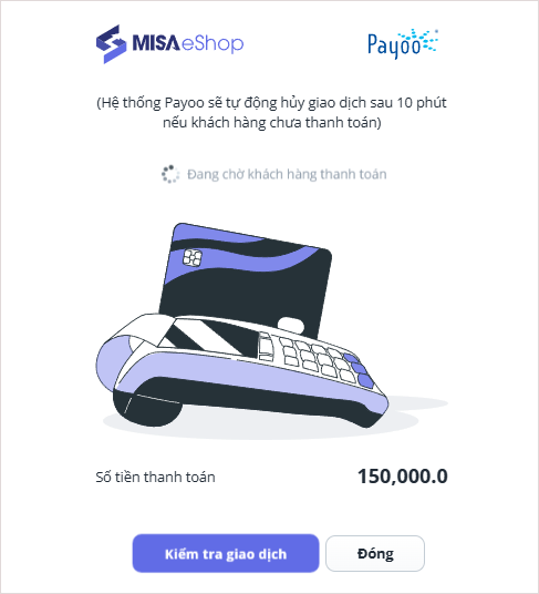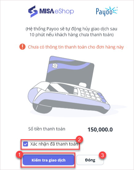 – Nhấn Kiểm tra giao dịch, tích chọn Xác nhận thanh toán và nhấn Đóng.