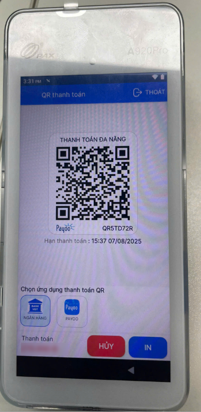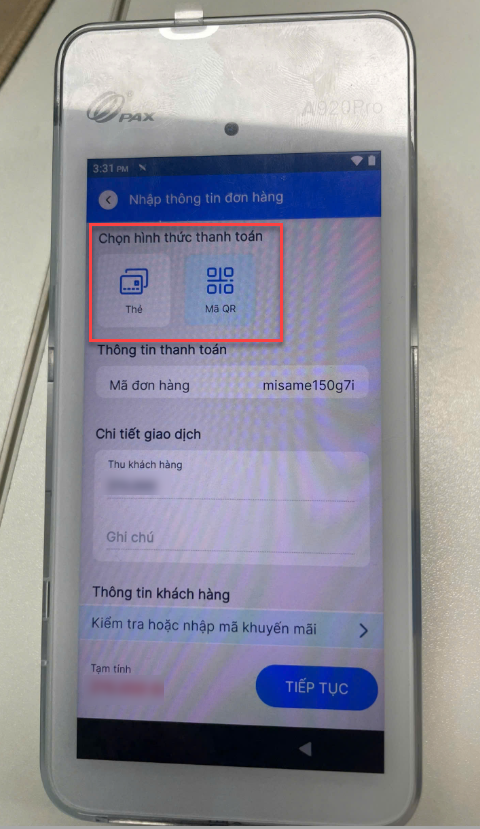 Bước 2: Thực hiện thanh toán trên máy POS cầm tay