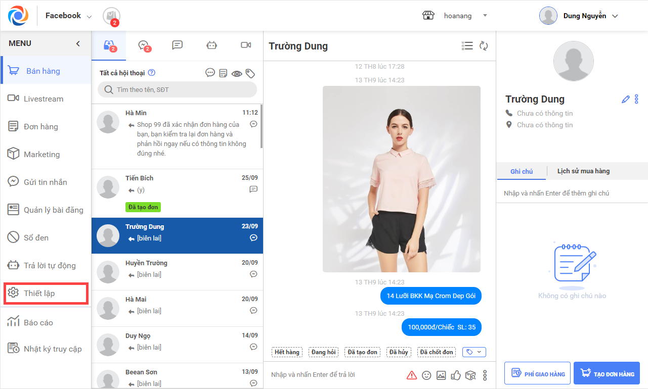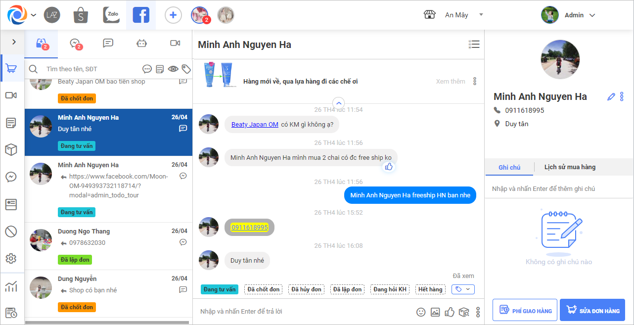 Giúp quản lý kết nối Fanpage bán hàng với phần mềm OCM.