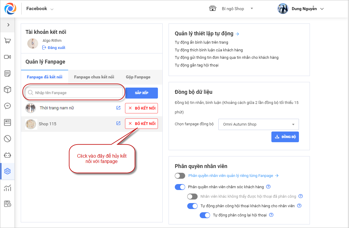 3.2.1. Hủy kết nối Fanpage
