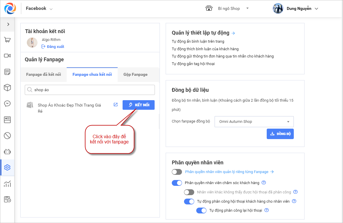 Bước 4: Thực hiện Kết nối FanPage.