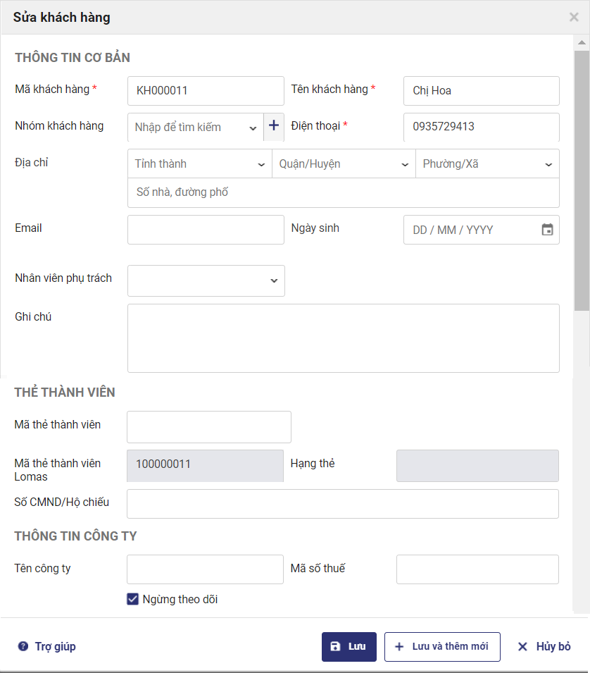 Để không hiển thị các khách hàng này khi thu tiền bán hàng, khi lập phiếu thu, chi thì cửa hàng có thể ngừng theo dõi khách hàng trên danh mục Khách hàng.