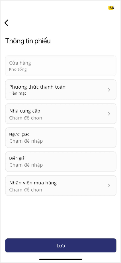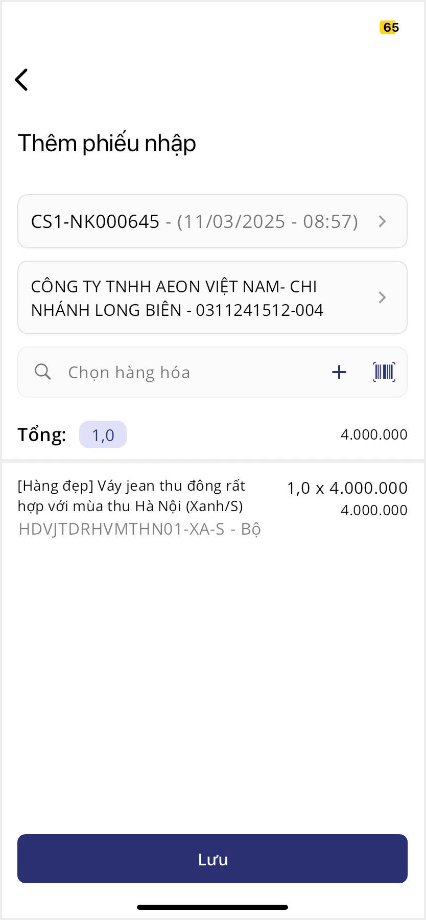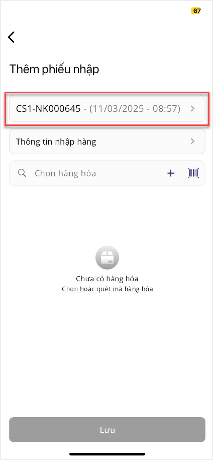 10. Sau khi đã hoàn thành khai báo các thông tin, nhấn Lưu để hoàn thành lập phiếu nhập hàng.