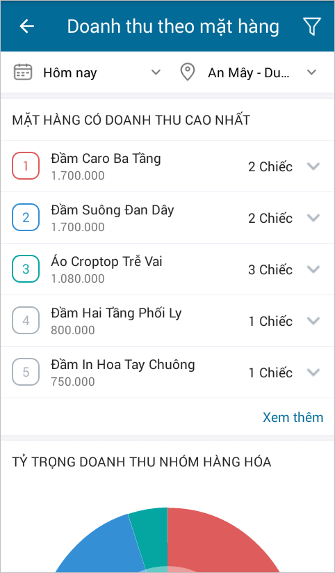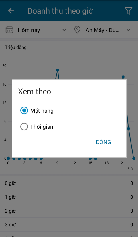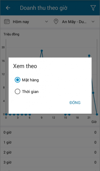 - Nhấn biểu tượng, chọn xem theo Mặt hàng.
