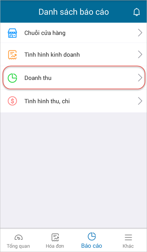 - Nhấn chọn tab Báo cáo/Doanh thu.