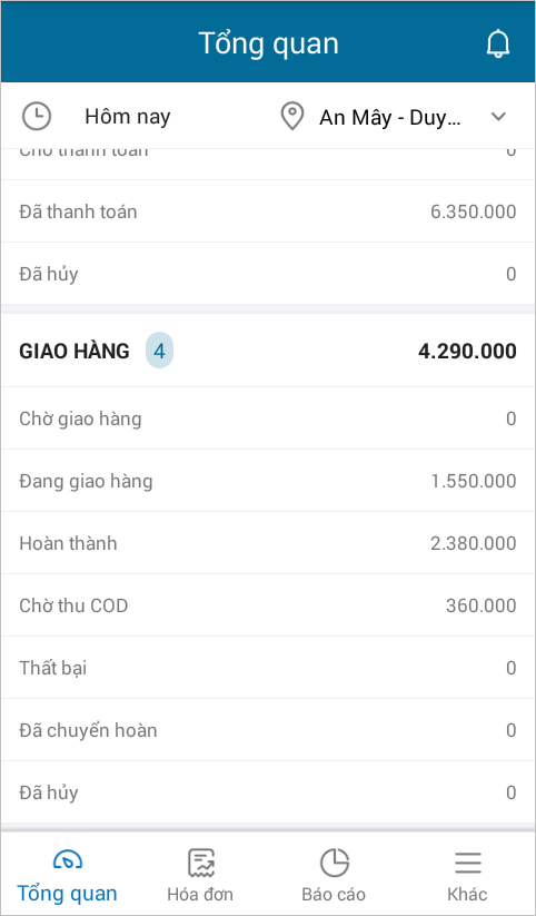 - Trên màn hình Tổng quan, chương trình đã hiển thị tình hình hoạt động trong ngày của cửa hàng.