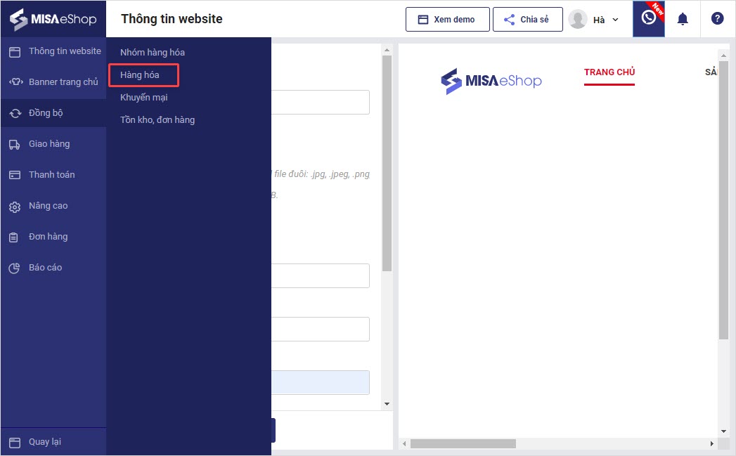 • Khi những hàng hóa đã cần xóa đã được đăng lên trang đặt hàng, cửa vào Trang đặt hàng\Đồng bộ\Hàng hóa.
