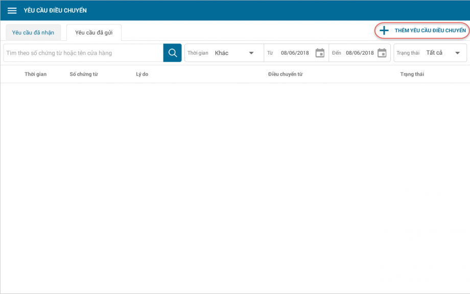 , chọn Yêu cầu điều chuyển. - Nhấn Thêm yêu cầu điều chuyển.