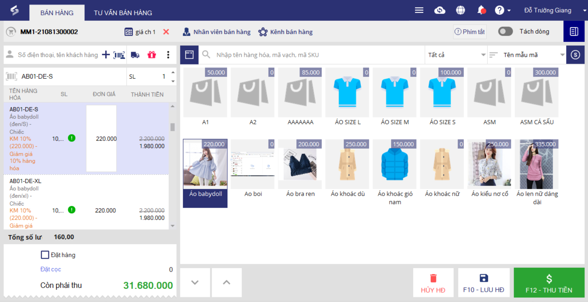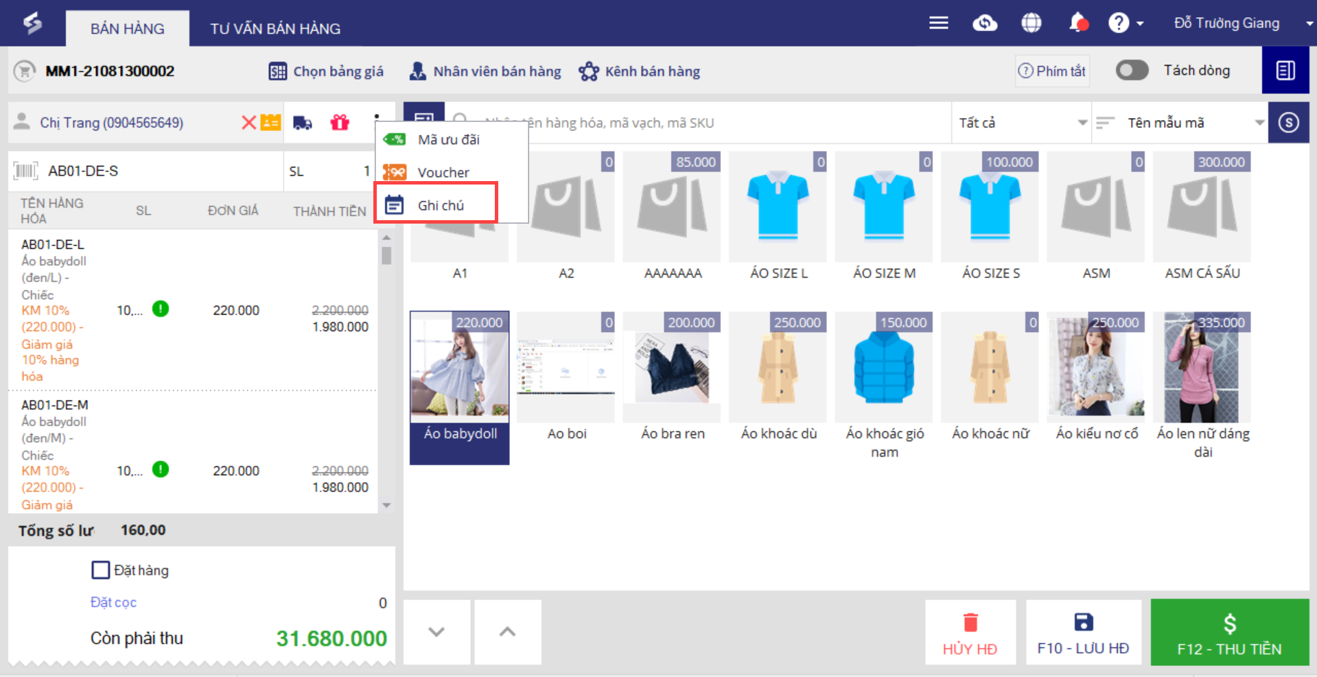 1. Chọn hàng hóa khách mua từ danh sách.