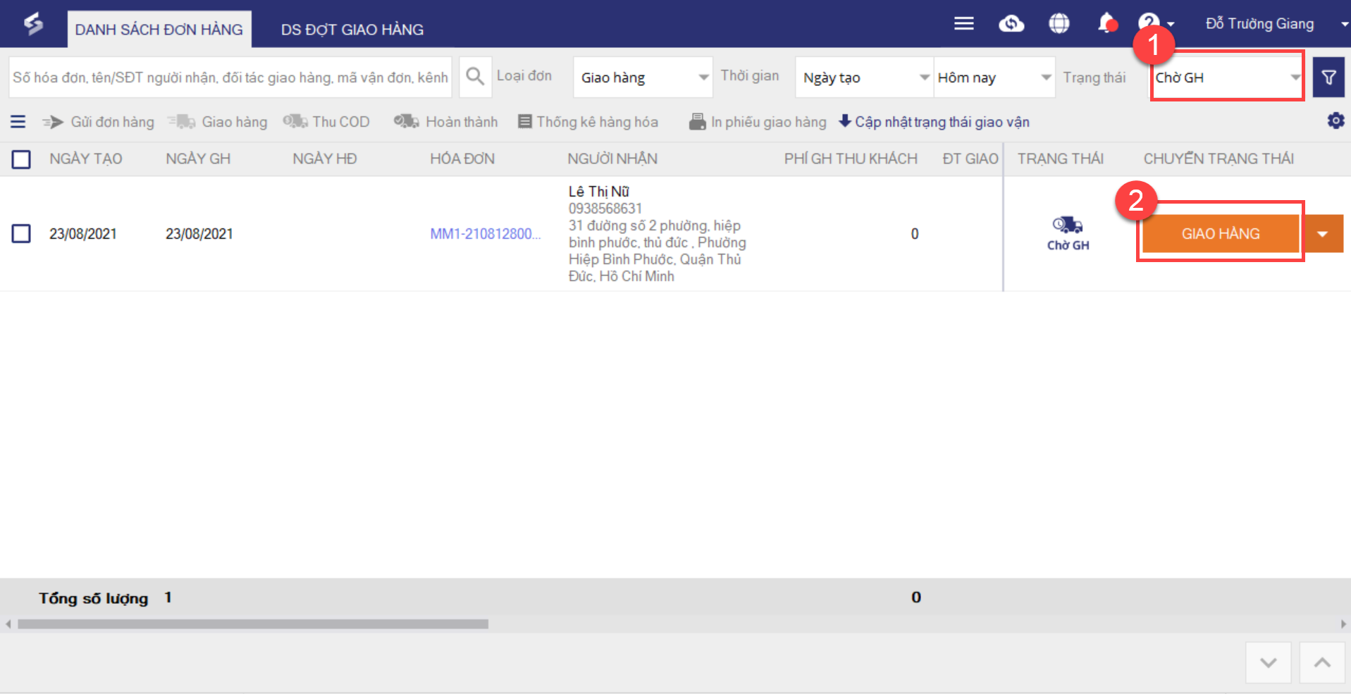 2. Chọn trạng thái Chờ Giao hàng.