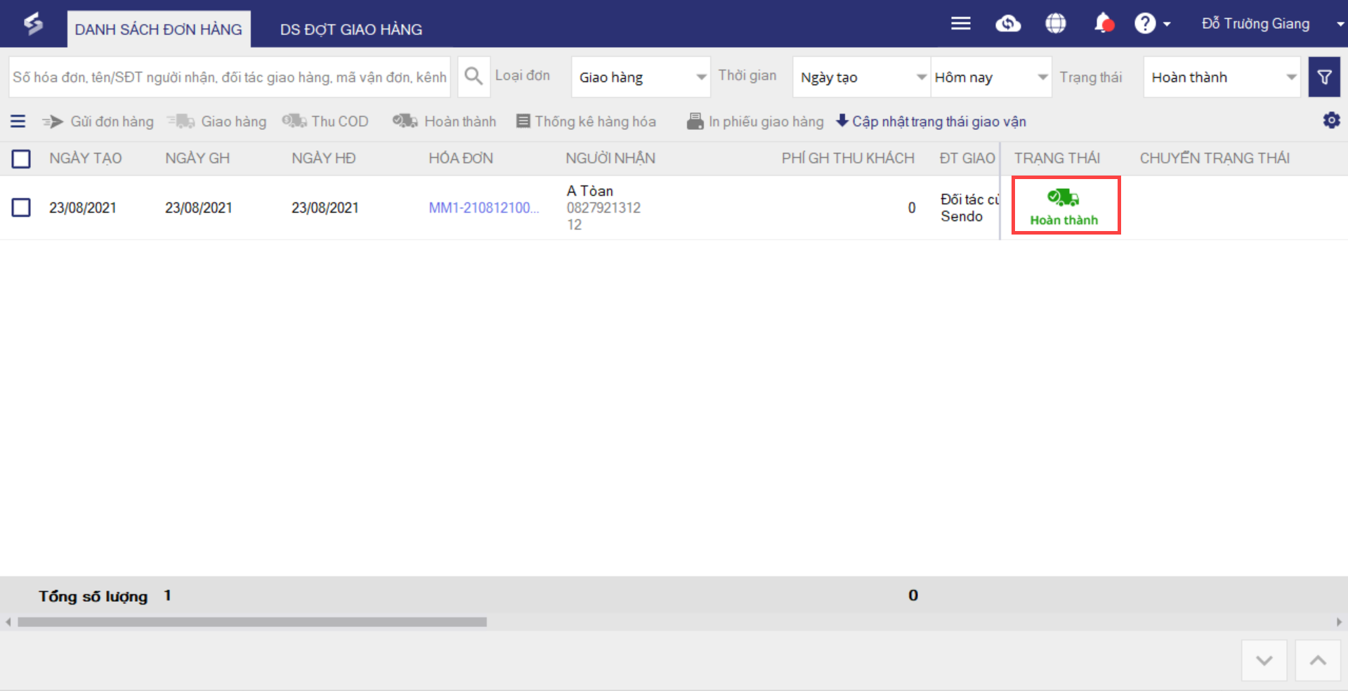 1. Sau khi đã giao hàng, đơn hàng của khách sẽ chuyển trạng thái Đang giao hàng.