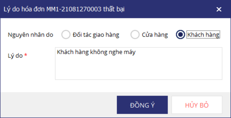 - Nhập lý do thất bại và nhấn Đồng ý.