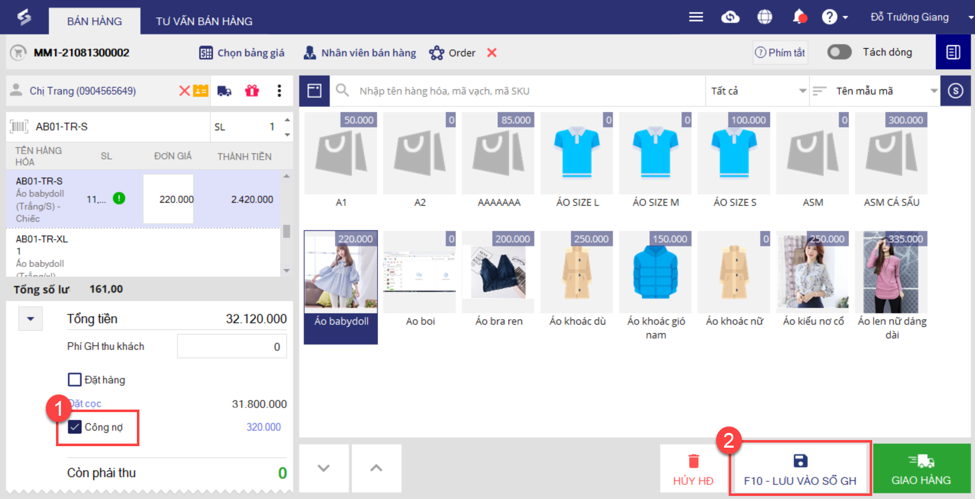 8. Sau đó, nhấn F10 – Lưu vào sổ GH (Lưu vào sổ giao hàng).