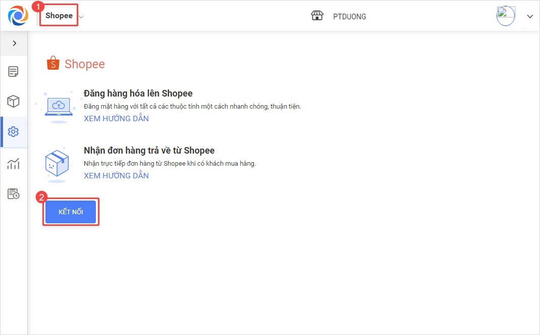 Bước 1: Chọn sàn thương mại điện tử cần liên kết.