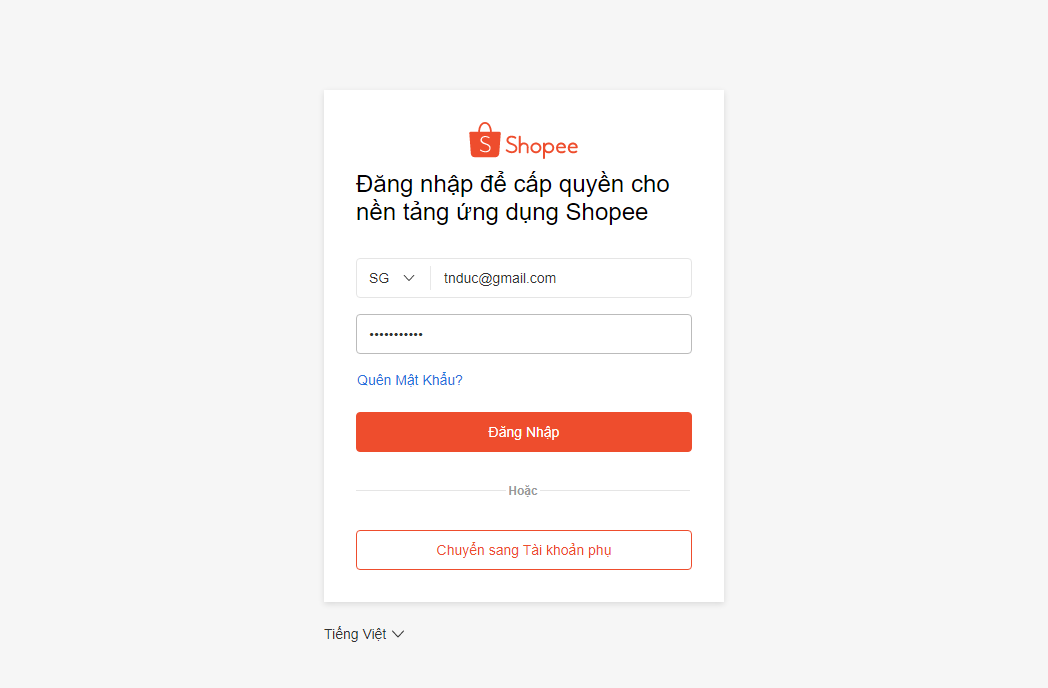 Bước 2: Đăng nhập vào tài khoản sàn đã đăng ký với sàn thương mại điện tử.