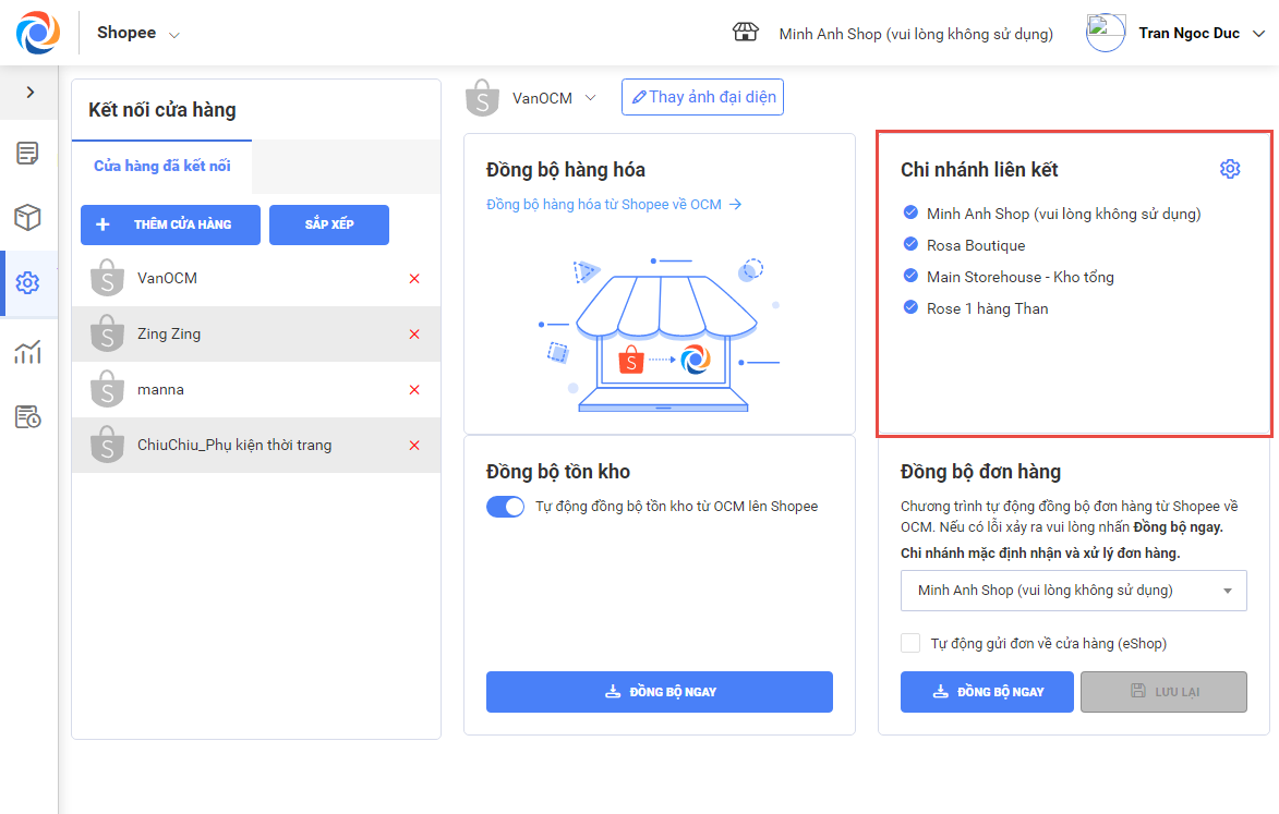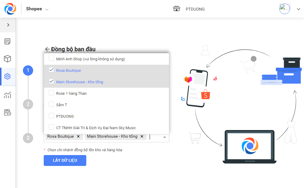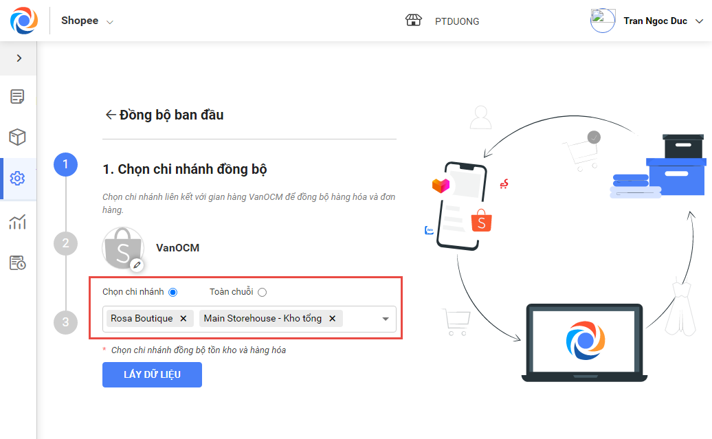 Bước 3: Đồng bộ hàng hóa từ cửa hàng lên sàn.