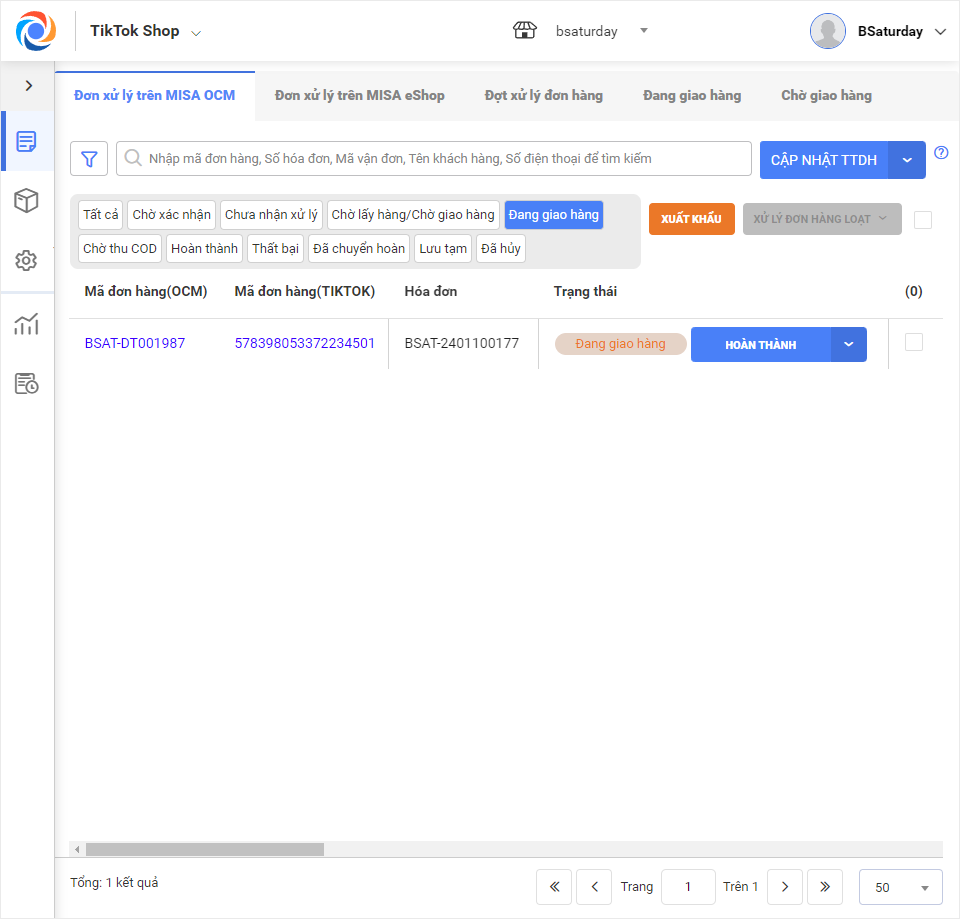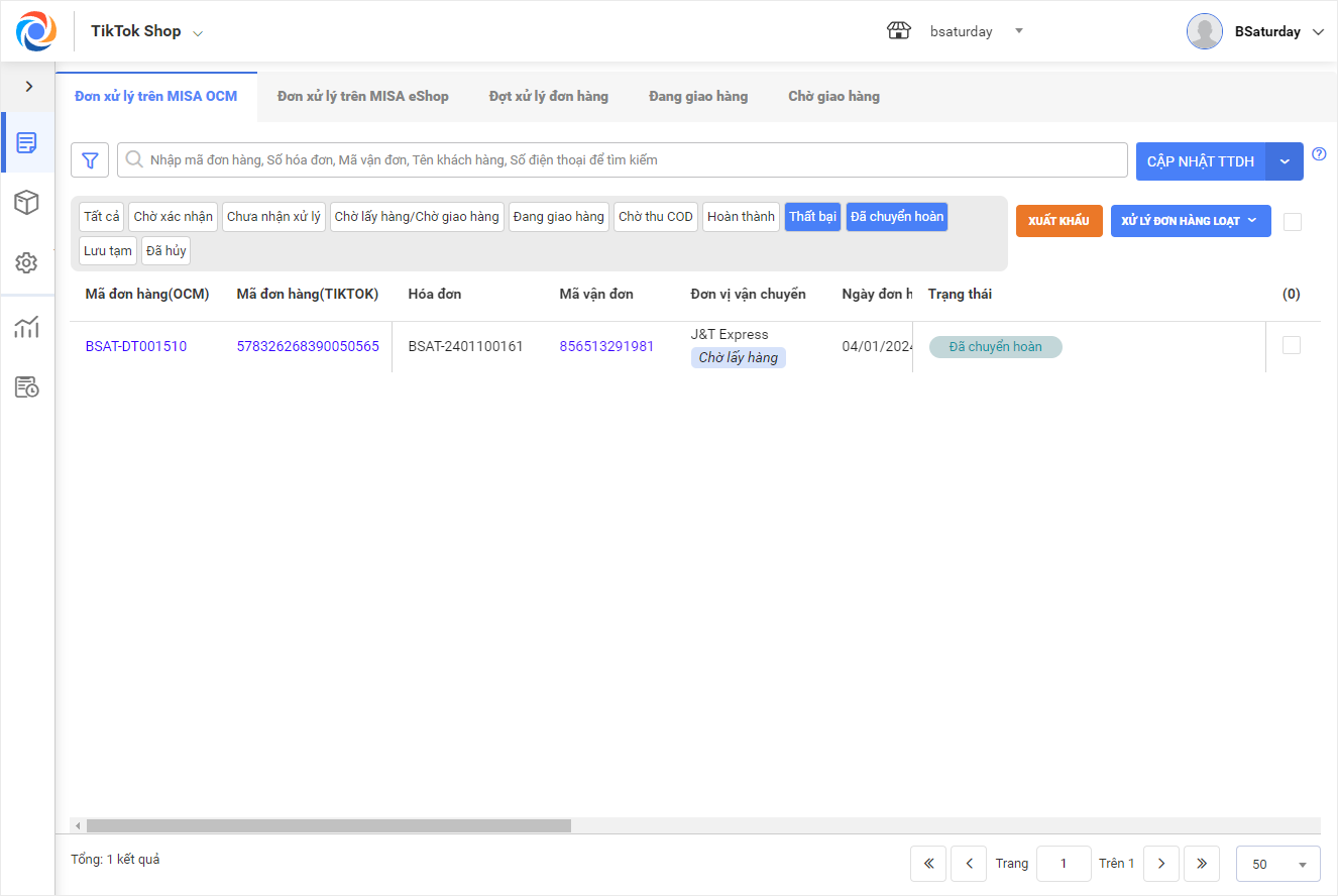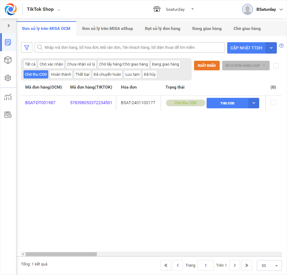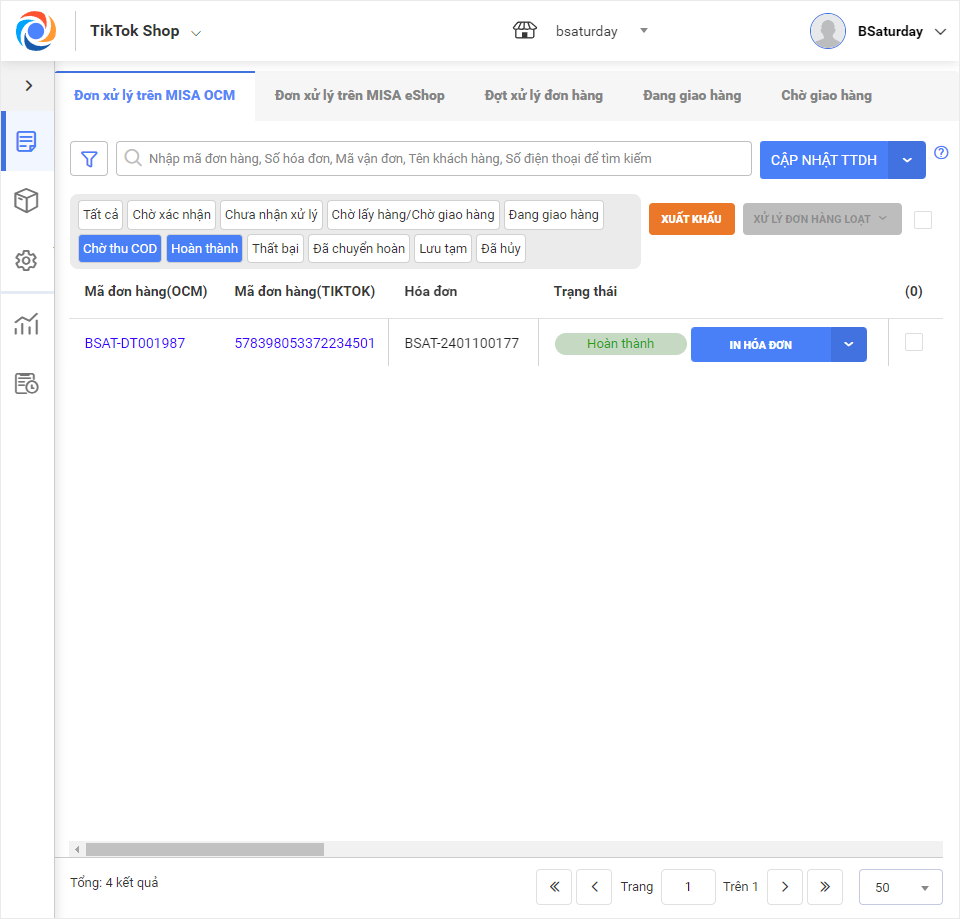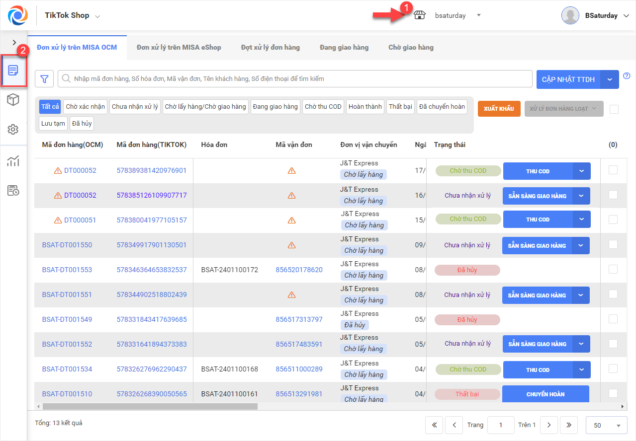 2.2 Các trạng thái đơn hàng TikTok Shop trên OCM