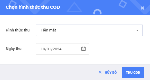 Sau khi người mua đã nhận được hàng, đơn hàng sẽ được chuyển từ trạng thái Đang giao hàng thành Chờ thu COD.