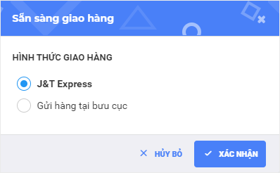 Trong trường hợp đơn vị vận chuyển hỗ trợ cả 2 hình thức: Gửi hàng tại bưu cụcĐơn vị vận chuyển đến lấy hàng, chương trình sẽ hiển thị màn hình Chọn hình thức lấy hàng để bạn lựa chọn.
