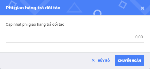 Khi nhận được hàng trả lại, bạn cần phải cập nhật phí giao hàng hoàn trả cho đối tác.