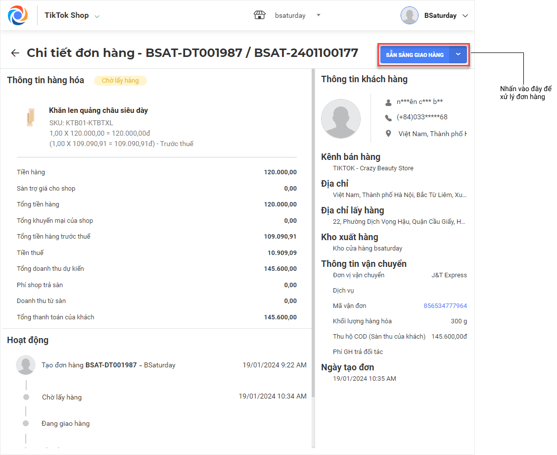Ngoài ra, bạn có thể xử lý và theo dõi trạng thái đơn ngay tại màn hình chi tiết của từng đơn hàng.
