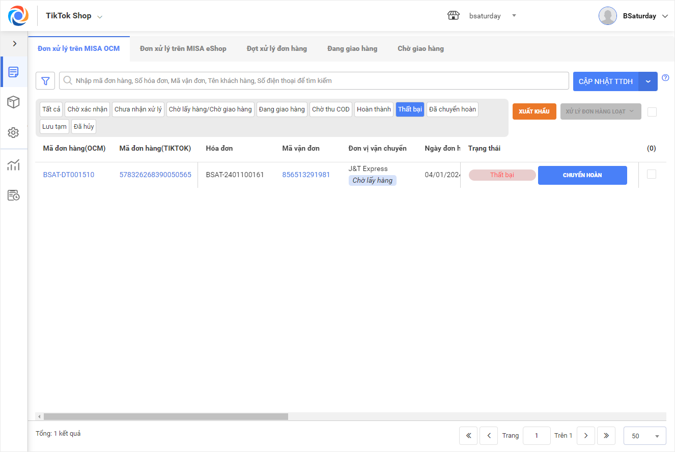 • Thất bại: Trạng thái đơn giao không thành công, người mua có yêu cầu hủy hàng/hủy đơn.