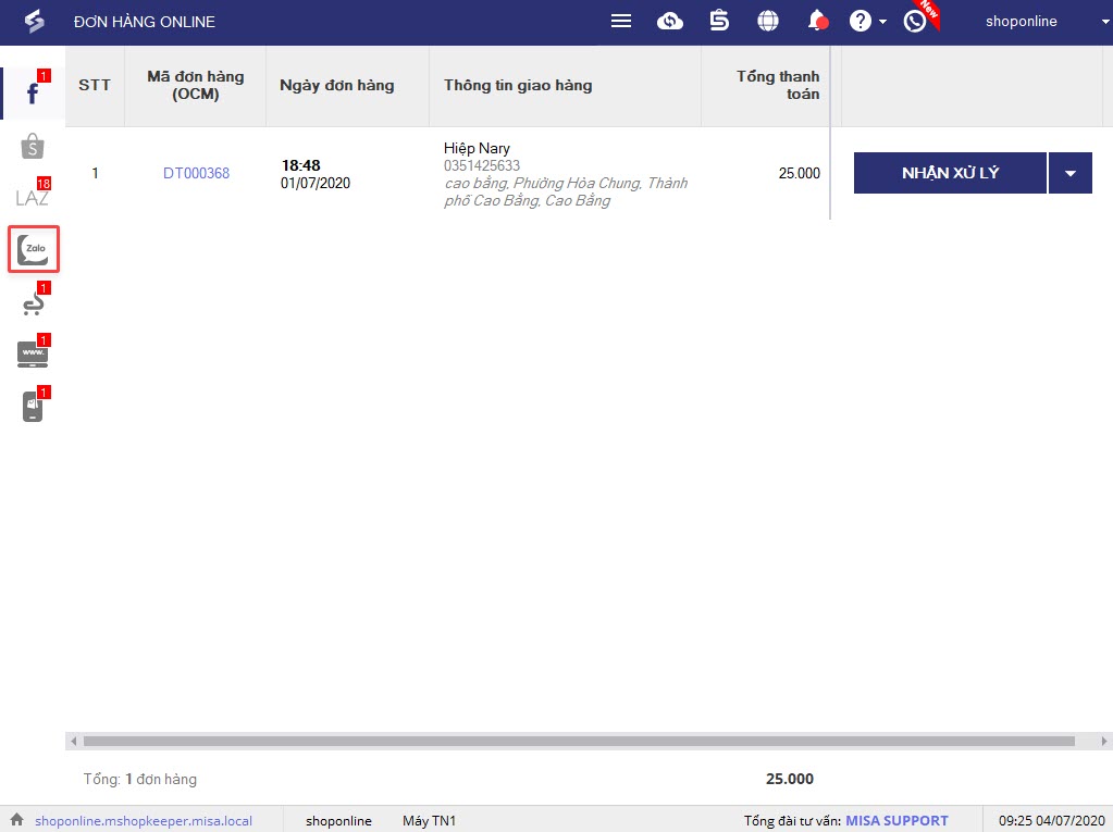 3. Xác nhận hoặc hủy đơn hàng của Zalo trên phần mềm bán hàng MISA eShop