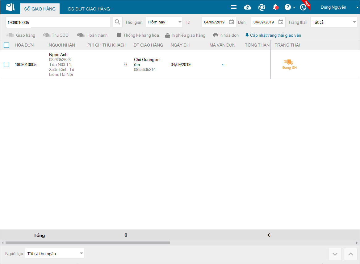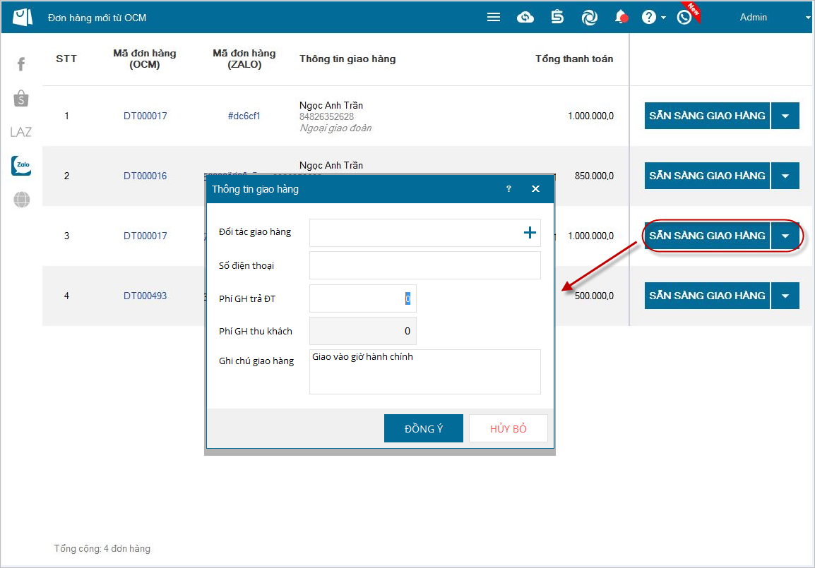 + Nhấn Sẵn sàng giao hàng chương trình sẽ hiển thị form yêu cầu nhập thông tin giao hàng.