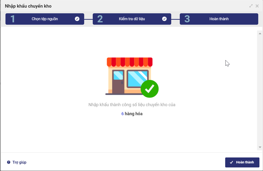 Khi chuyển hàng từ kho lưu trữ đến kho bán hàng, người dùng có thể nhập khẩu danh sách các hàng hóa cần điều chuyển từ file excel sẵn có theo kế hoạch đã lập mà không cần mất công sức nhập từng hàng hóa theo 2 bước sau: