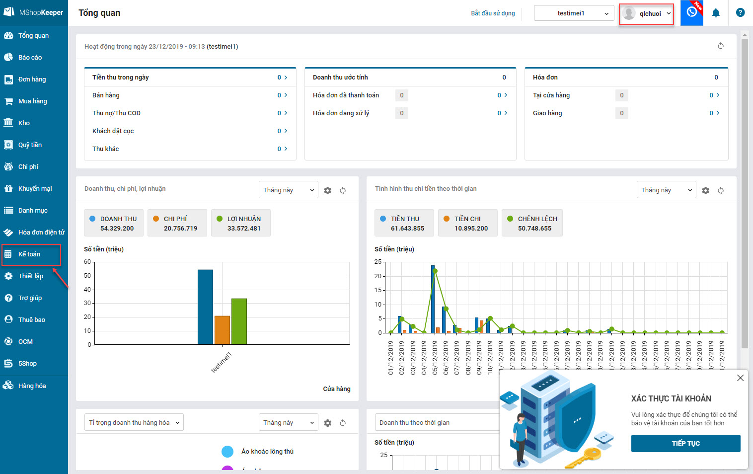 Ví dụ: Đăng nhập vào chương trình bằng tài khoản Quản lý chuỗi chưa được phân quyền sử dụng phân hệ Kế toán.