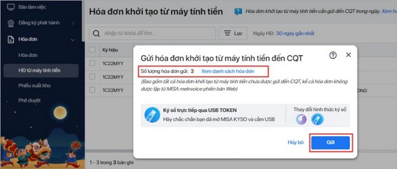 – Nhấn Gửi. Chương trình chuyển dữ liệu hóa đơn đến CQT.