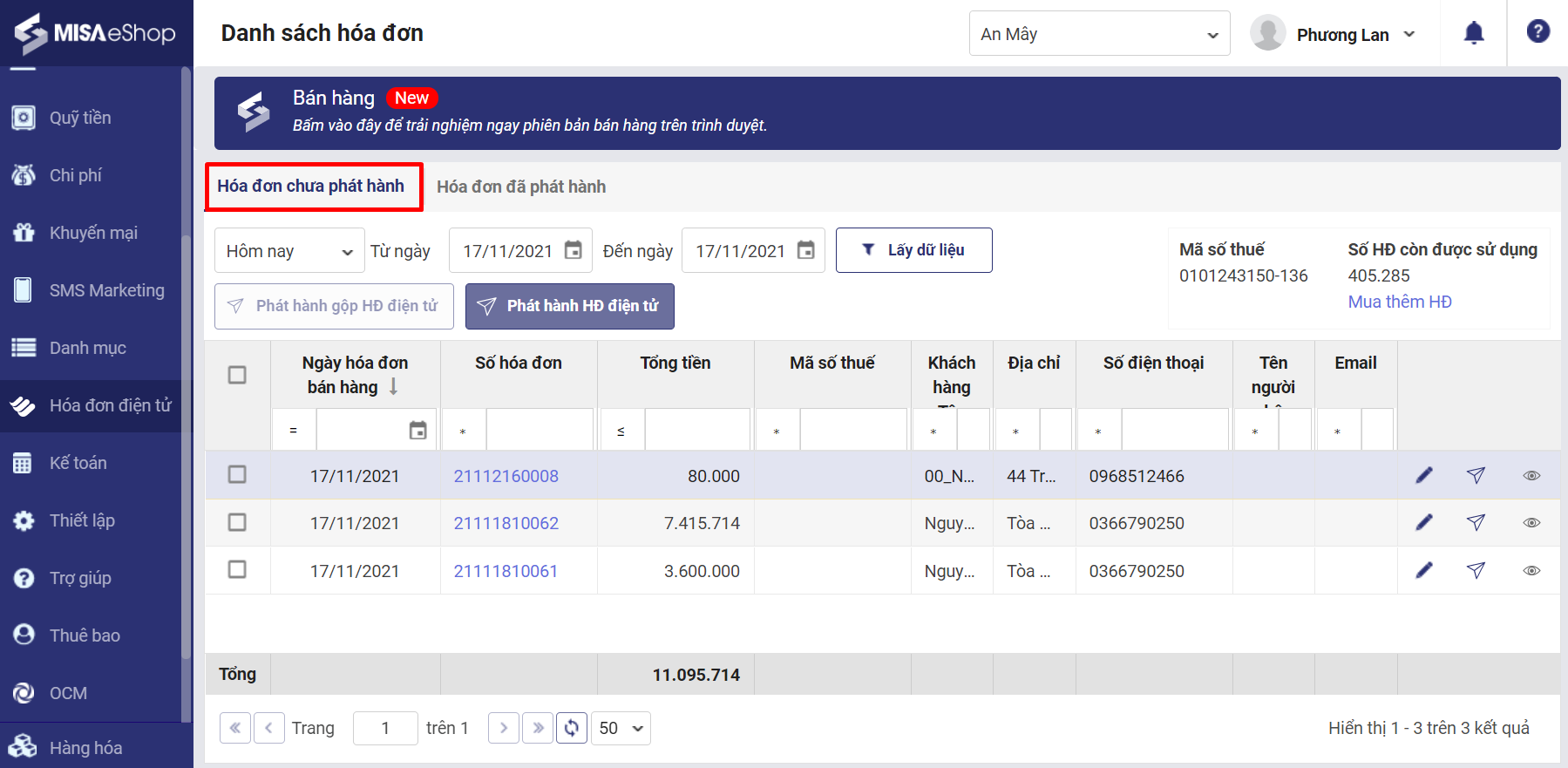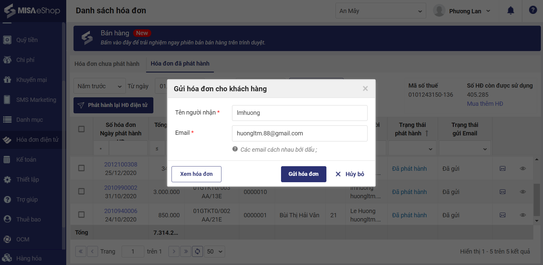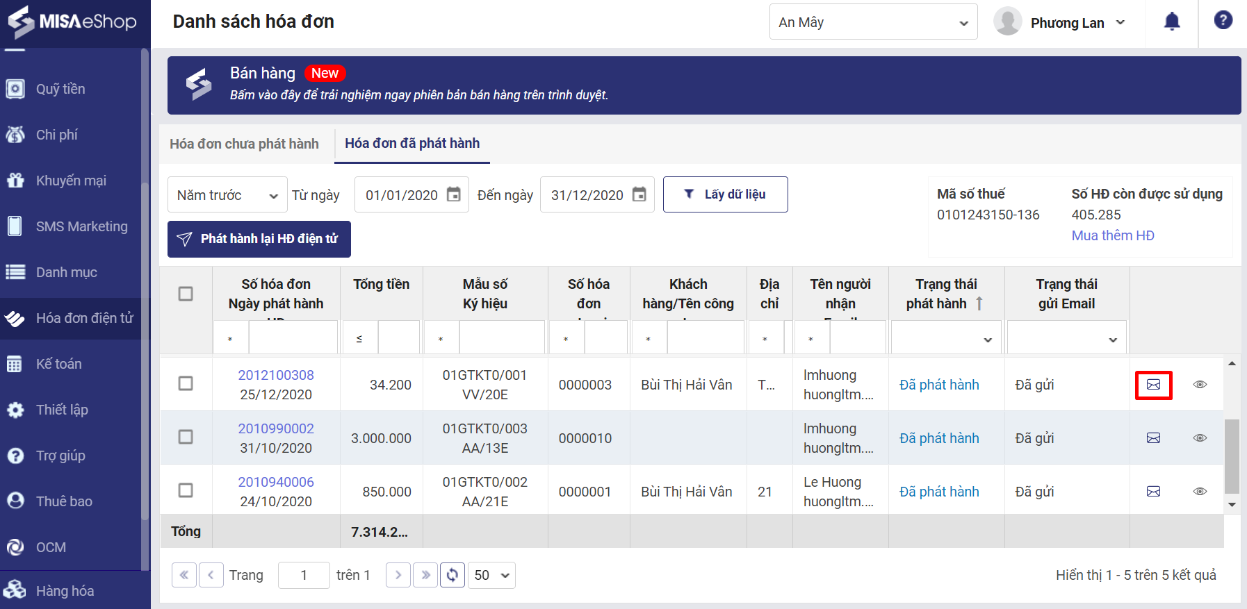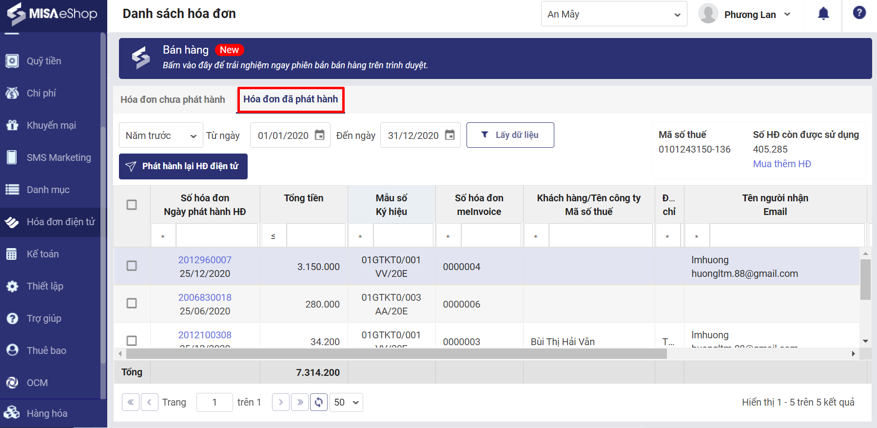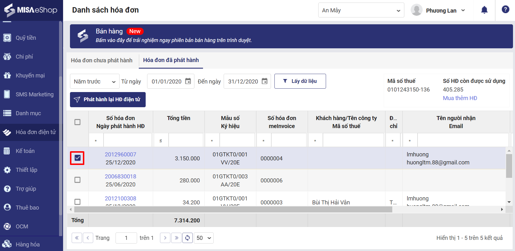 4. Để xem hướng dẫn quản lý danh sách hóa đơn, vui lòng xem hướng dẫn tại đây.