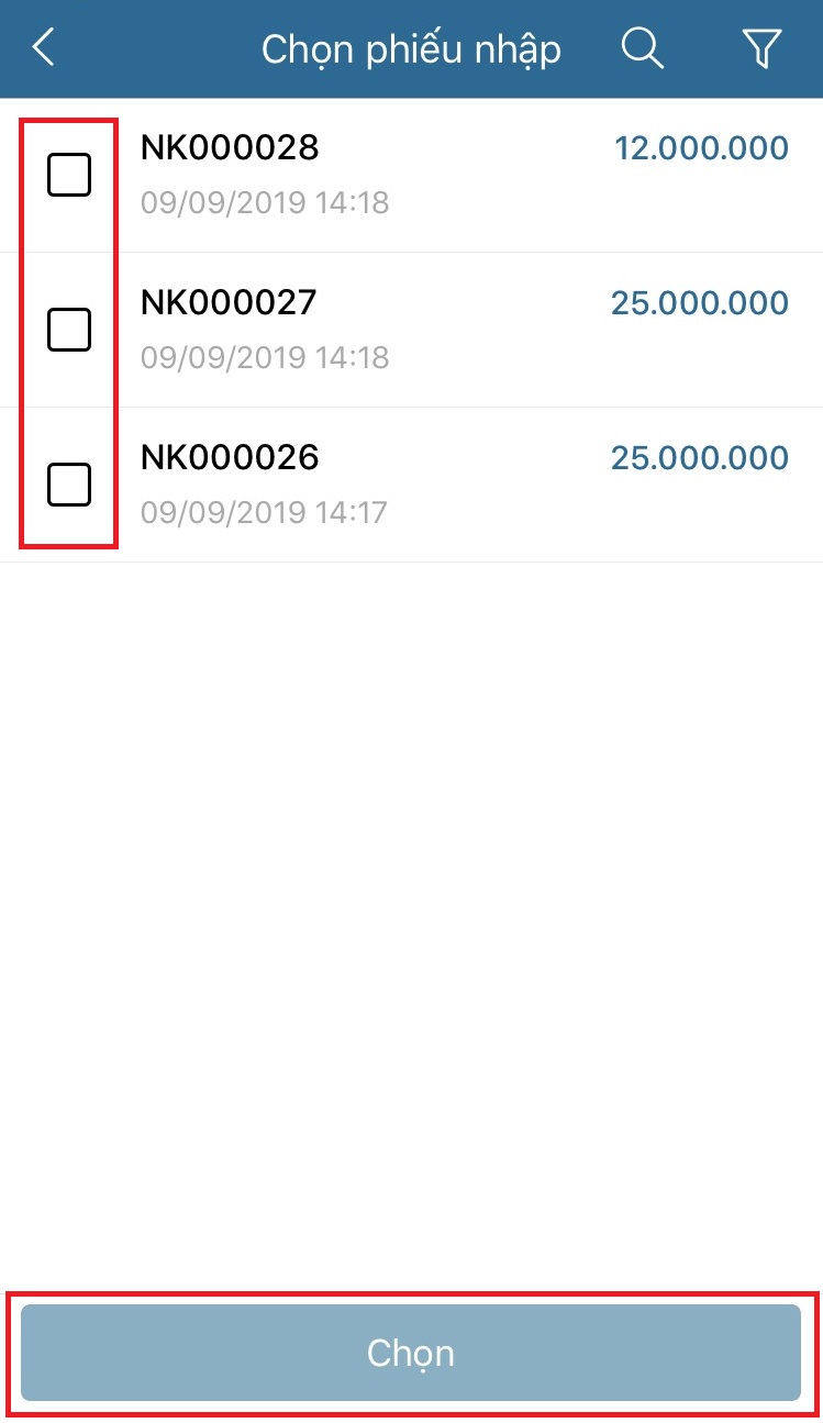- Danh sách phiếu trả chọn icon