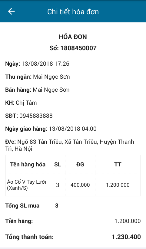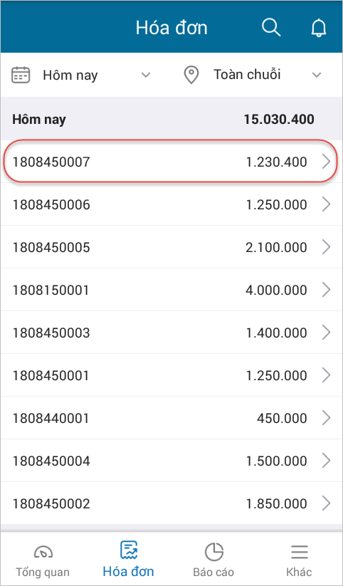 - Nhấn chọn thông tin hóa đơn để xem chi tiết.