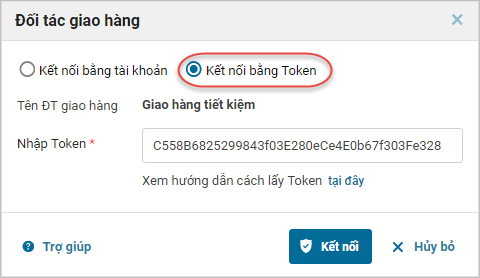 9. Cho phép người dùng lựa chọn kết nối với đối tác giao hàng bằng tài khoản đăng nhập hoặc bằng Token (Thí điểm cho một số khách hàng)