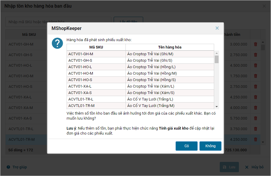 Chi tiết thay đổi: Tại một số cửa hàng mới sử dụng phần mềm MShopKeeper, sau khi đã nhập tồn kho đầu kỳ cho hàng hóa và thực hiện lập các phiếu nhập hàng/bán hàng, kế toán phát hiện số dư hàng hóa trên phần mềm không chính xác và muốn sửa lại số dư tồn kho của hàng hóa. Tuy nhiên hiện tại, chương trình không cho phép thực hiện sửa số dư đối với các hàng hóa đã có phát sinh. Kể từ phiên bản R13, chương trình cho phép kế toán cửa hàng sửa thông tin số dư cho hàng hóa để đáp ứng nhu cầu trên.