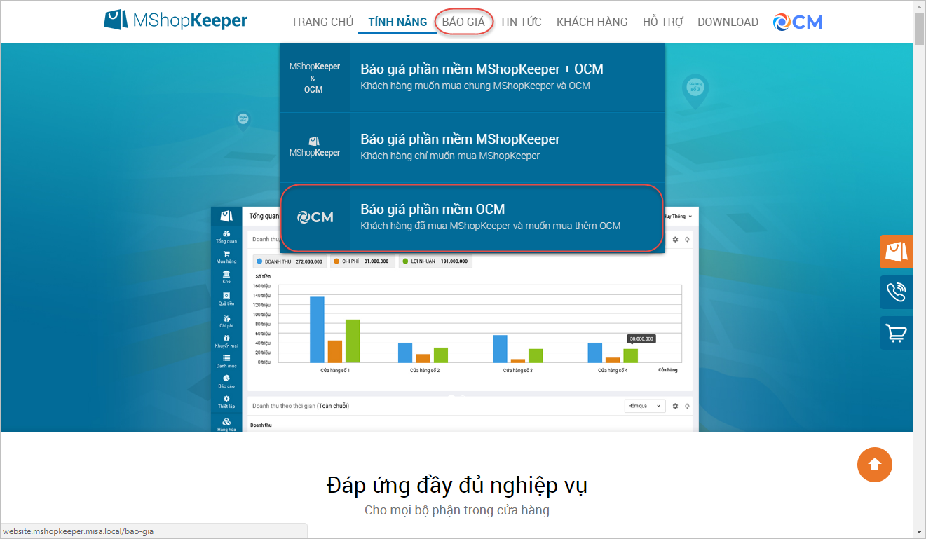 - Trên tab Báo giá, lựa chọn Báo giá phần mềm MShopKeeper + OCM.